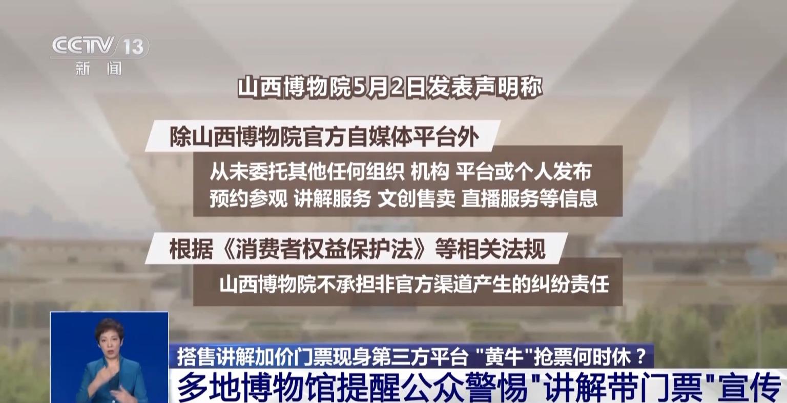 山西博物院发表声明称,除山西博物院官方自媒体平台外,从未委托其他任何组织、机构、平台或个人发布预约参观、讲解服务、文创售卖和直播服务等信息。根据《中华人民共和国消费者权益保护法》等相关法规,山西博物院不承担非官方渠道产生的纠纷责任。