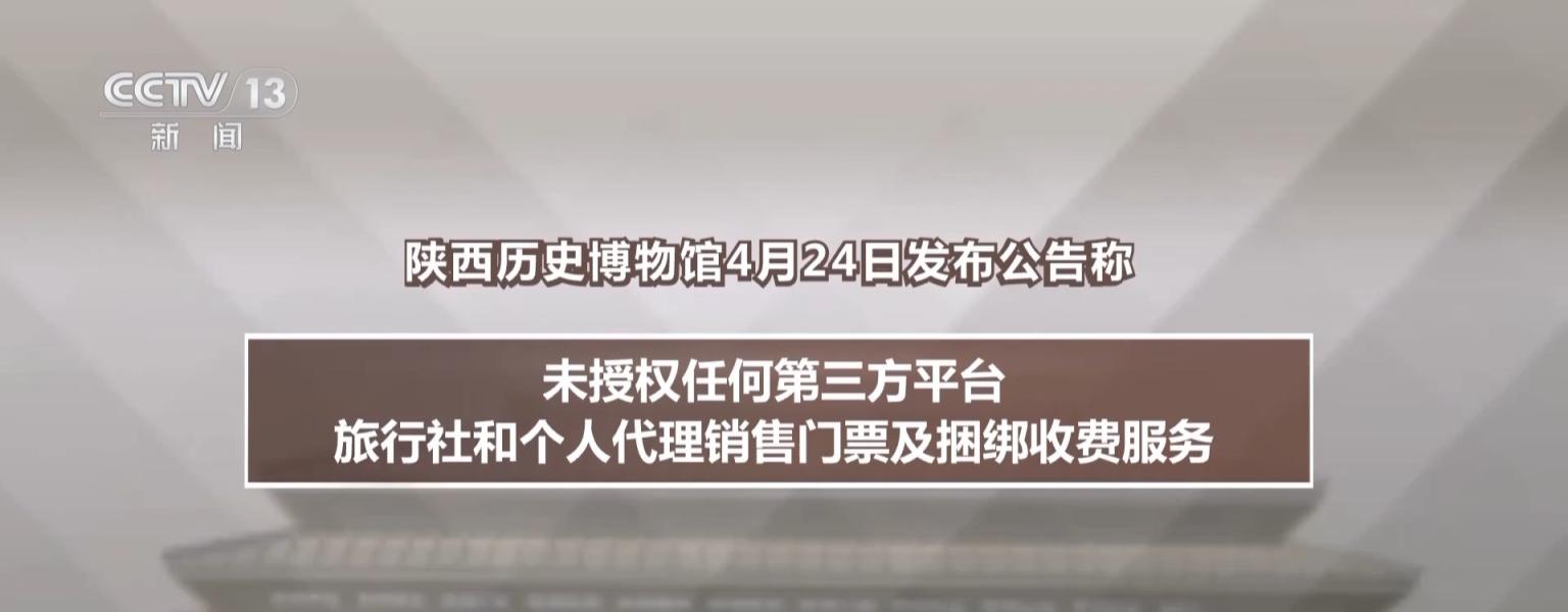 陕西历史博物馆发布公告称,未授权任何第三方平台、旅行社和个人代理销售门票及捆绑收费服务。